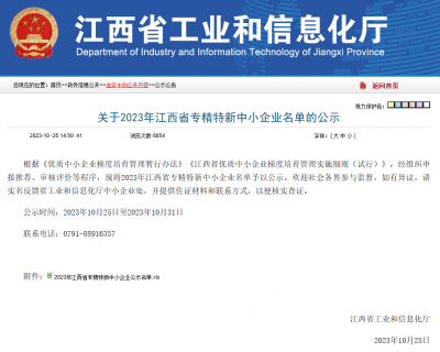 2023年10月25日,我司取得了2023年江西省专精特新中小企业名单公示